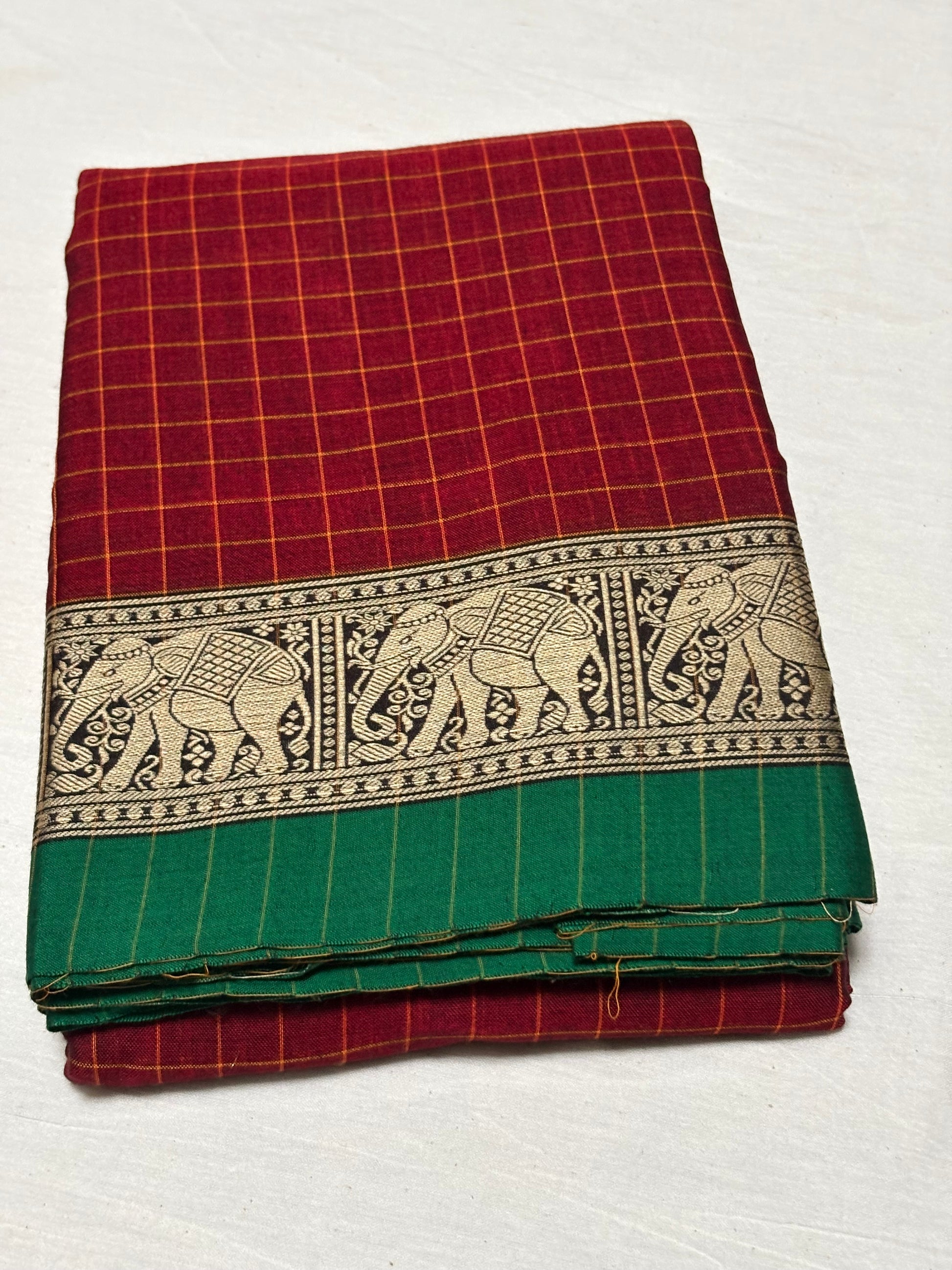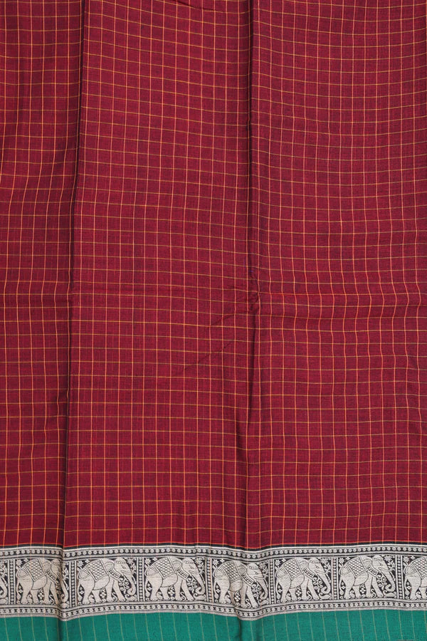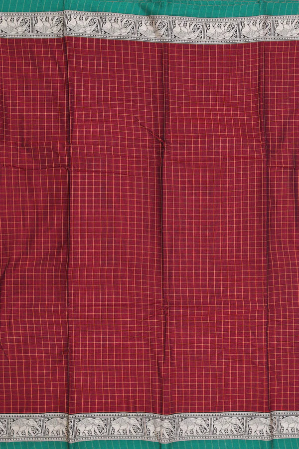 Narayanapet saree in maroon shade with Checks Design.